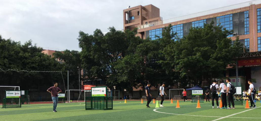 足球訓(xùn)練器材《紅旗榜》挑戰(zhàn)游戲在廣州市漁沙坦小學(xué)形成一道亮麗的風(fēng)景