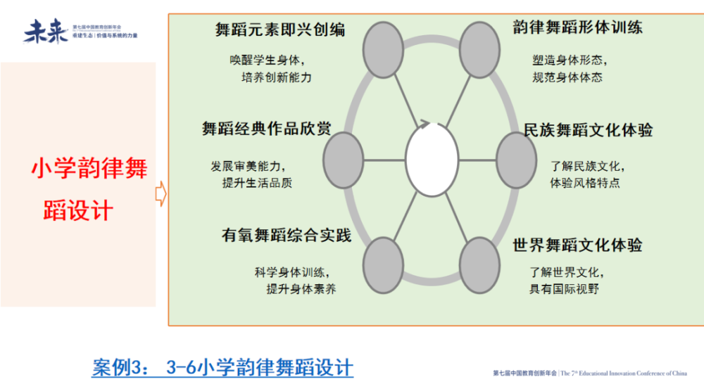 比如說1-3年級為體驗階段,韻律舞蹈分為“我與身體玩游戲”“我與身體交朋友”“我與身體來對話”,舞蹈一定是注重培養(yǎng)孩子的興趣,情境模式教學(xué)和舞蹈游戲、節(jié)奏游戲相結(jié)合,寓教于樂。